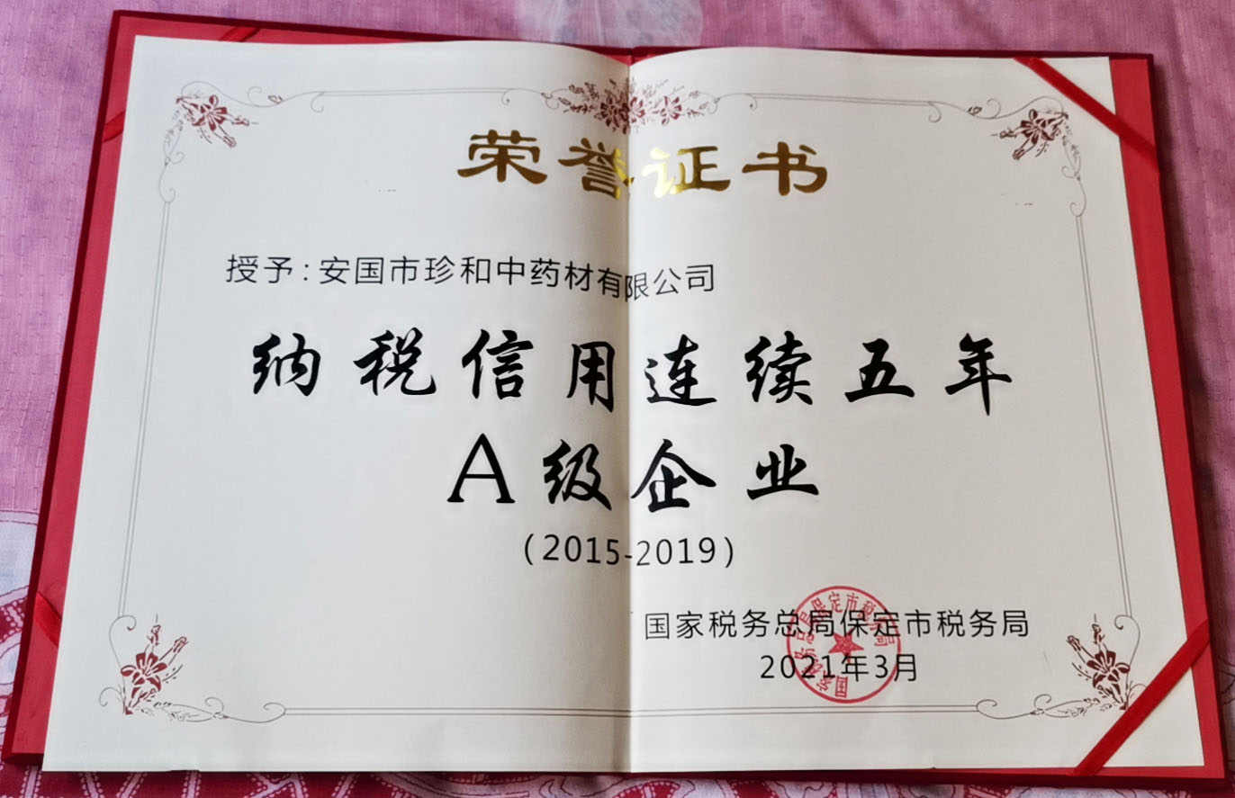 納稅信用連續(xù)五年A級企業(yè)